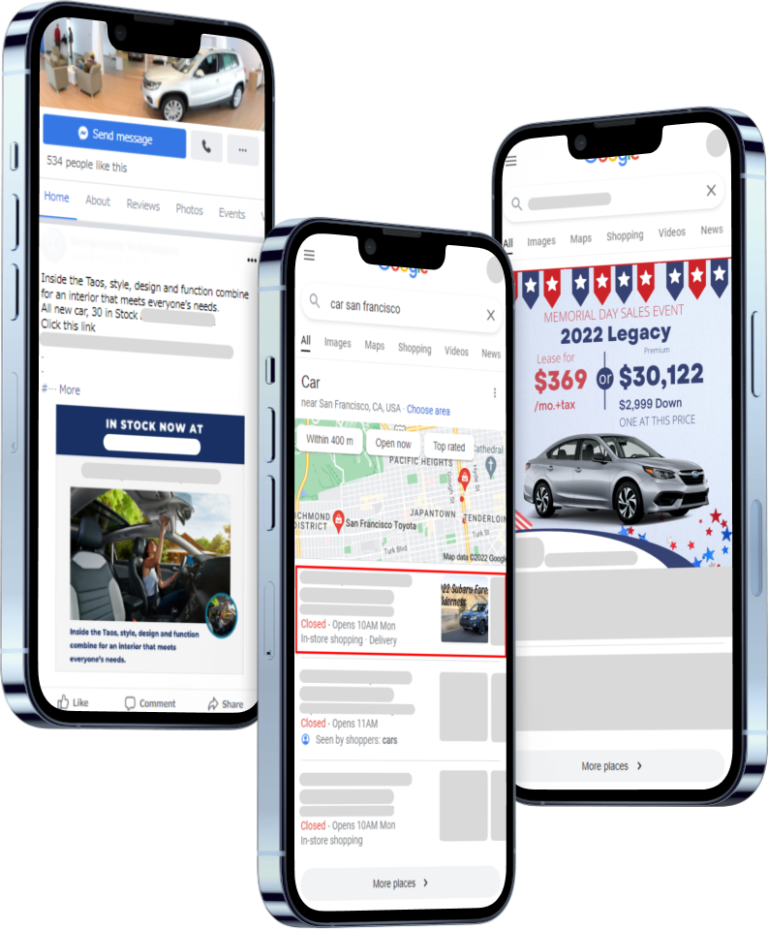 & remarketing, VIN targeting, video marketing, and social media promotion.